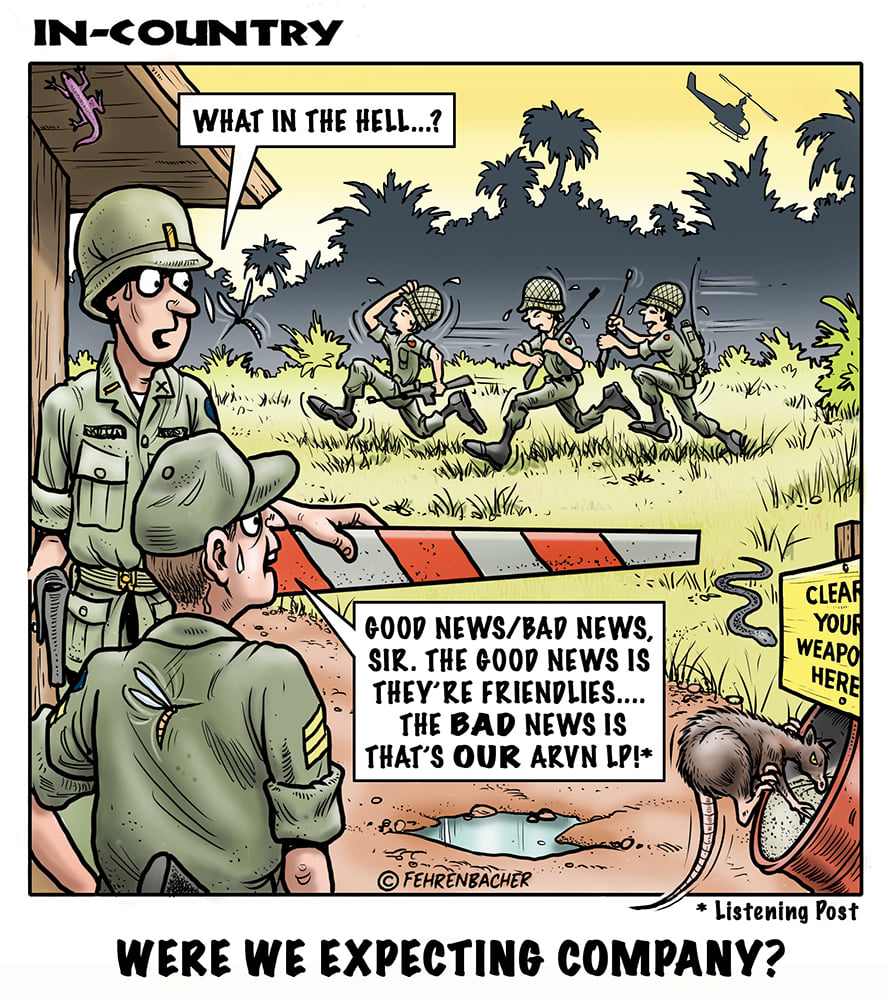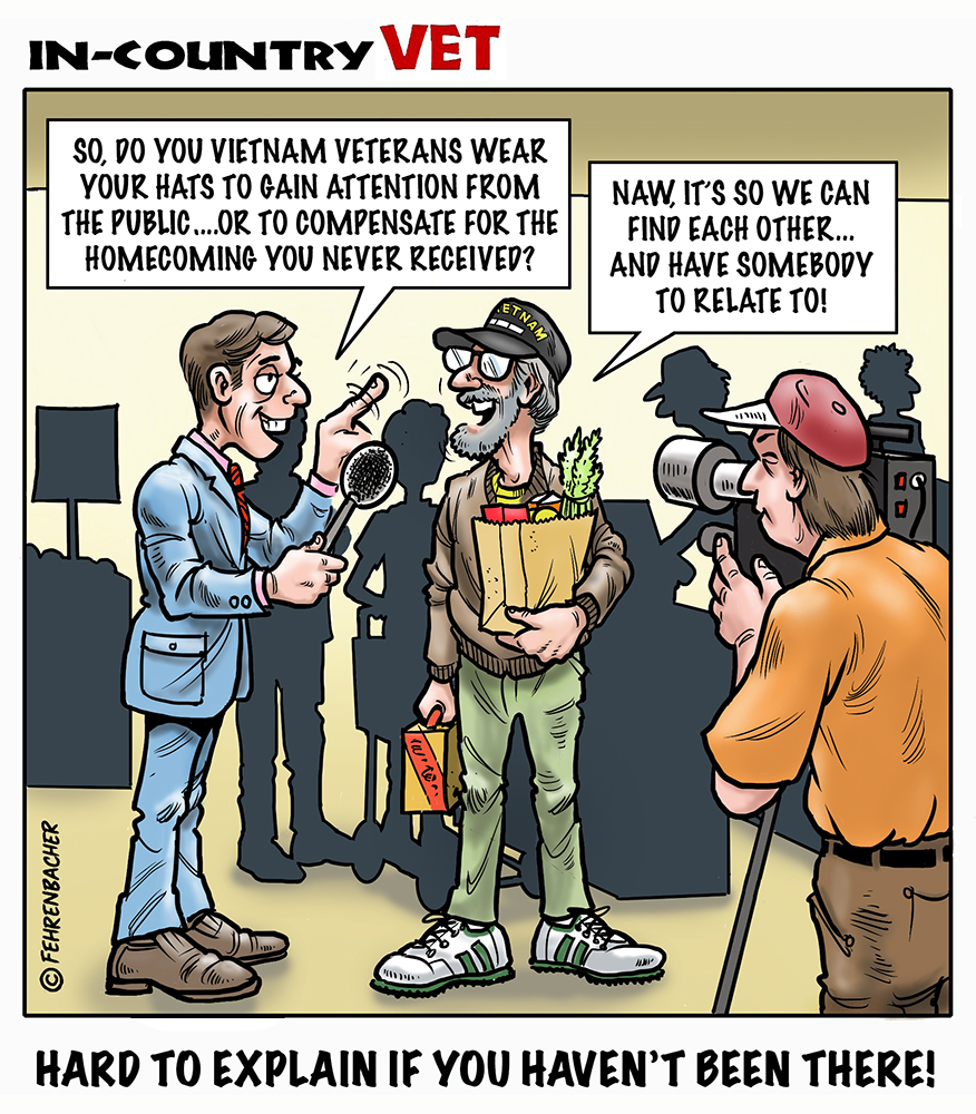 Phil enlisted in the Army in 1965 where you served for years in Vietnam. He became a graphic designer and has worked for the state of Oregon for 26 years. He retired in 2003 and started the Cartoon "In-Country". The cartoons reflect his experiences during his tour of duty in South Vietnam.